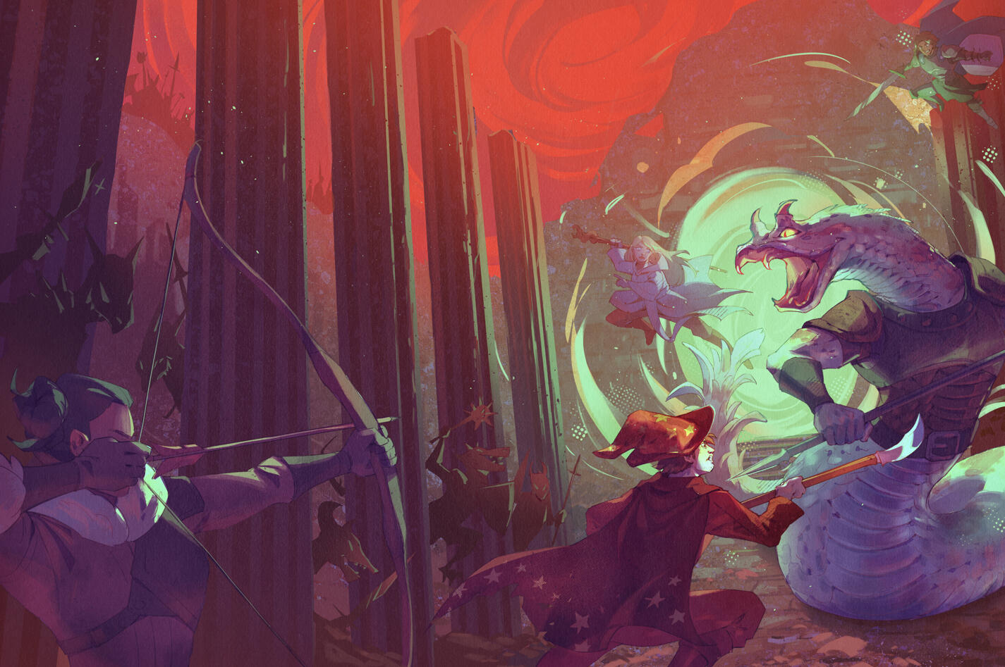 Nisnow illustrates the magic in the mundane through vibrant colors, detailed backgrounds, and dynamic lighting. They love drawing character-driven illustration with a touch of graphic design, tasty textures, and plenty of birds. They're based in Seattle, WA and have worked with clients such as Podium Publishing, Wraithmarked Creative, and Dungeon Crawler Carl making illustrations for books. Nisnow is now working on their own comic that includes even more birds and magical mayhem.
