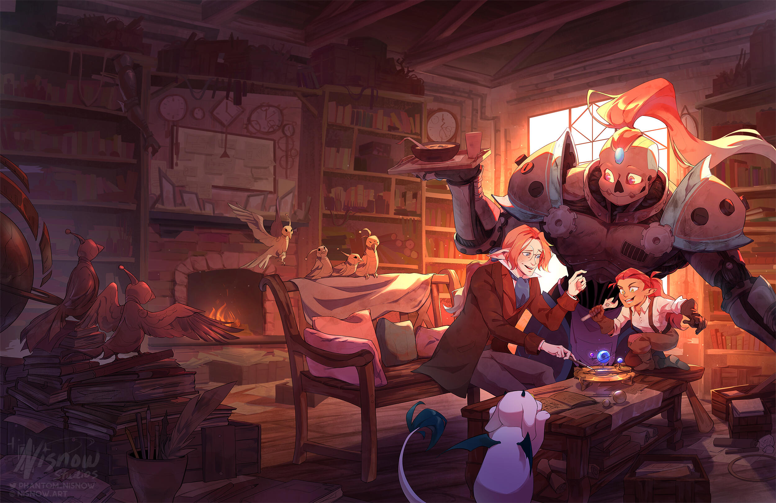Nisnow is a software engineer, freelance illustrator, totally-sane writer, and graphic designer based in Seattle, Washington. They love drawing slice-of-life illustrations in fantasy and steampunk settings with bright colors, dramatic lighting, and detailed backgrounds.They work as a freelance illustrator and character designer in the gaming and publishing industries. Nisnow is now working on their own original illustrated novel.Other than drawing, you can find them reading a good book and drinking boba tea.Ominous third-person writing aside, you can reach out to me at phantomnisnow@gmail.com or through Instagram direct messages. If you're interested in a private commission, please go to this page for more info.